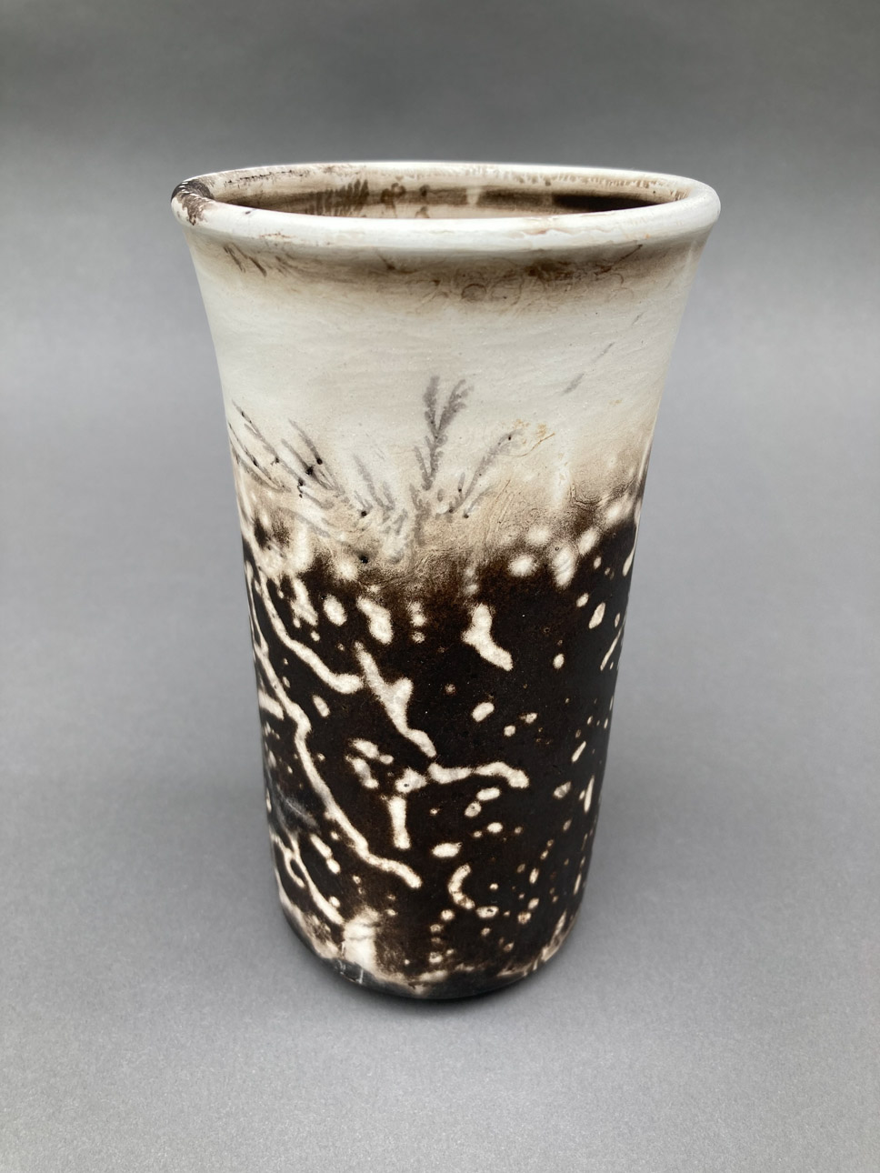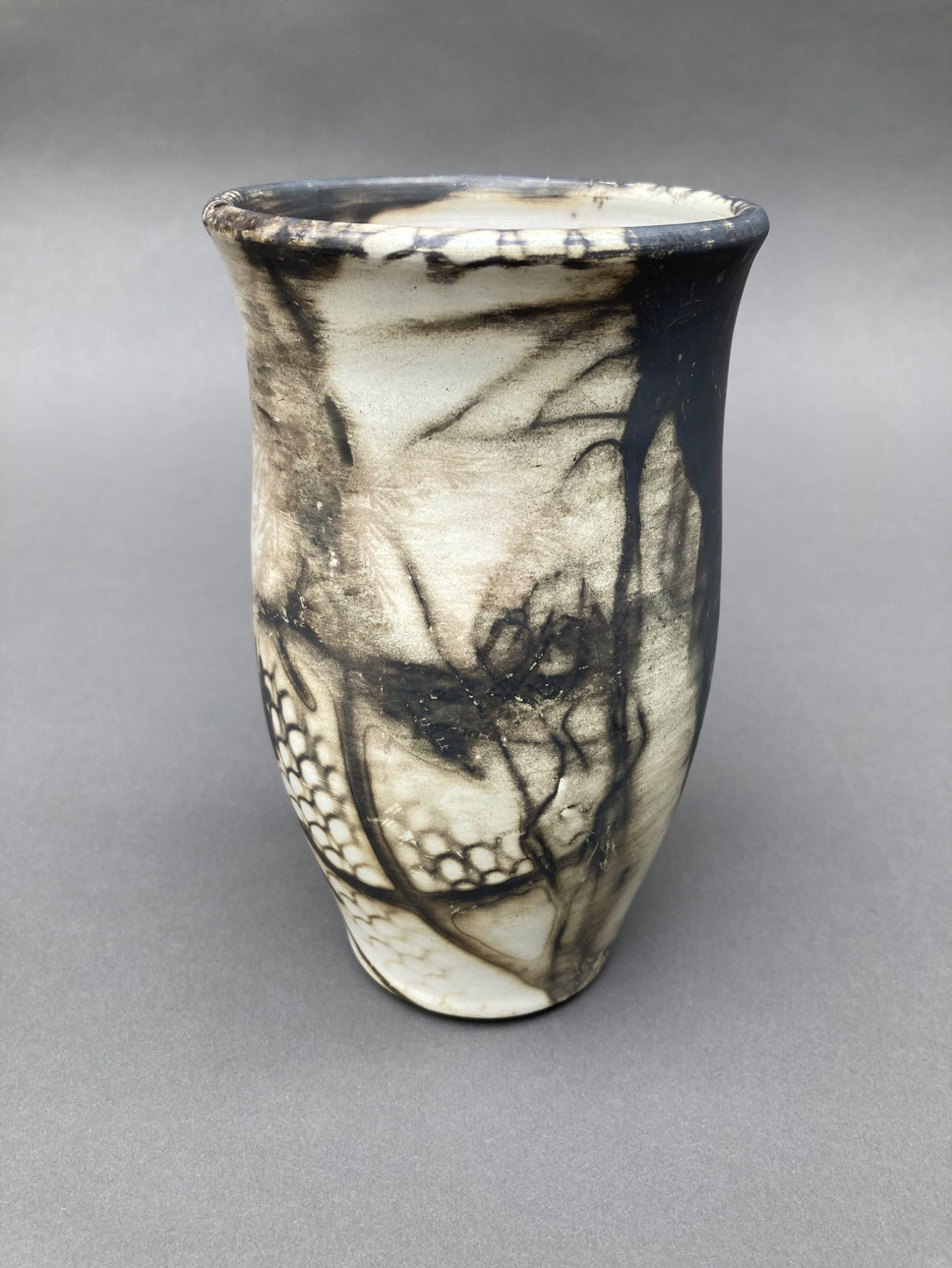 In my own studio I began working with glazed white stoneware, then moved on to smoke-fired earthenware, and finally to porcelain. Of late, I have been exploring the low-fire techniques of horsehair, saggar, and unglazed raku.