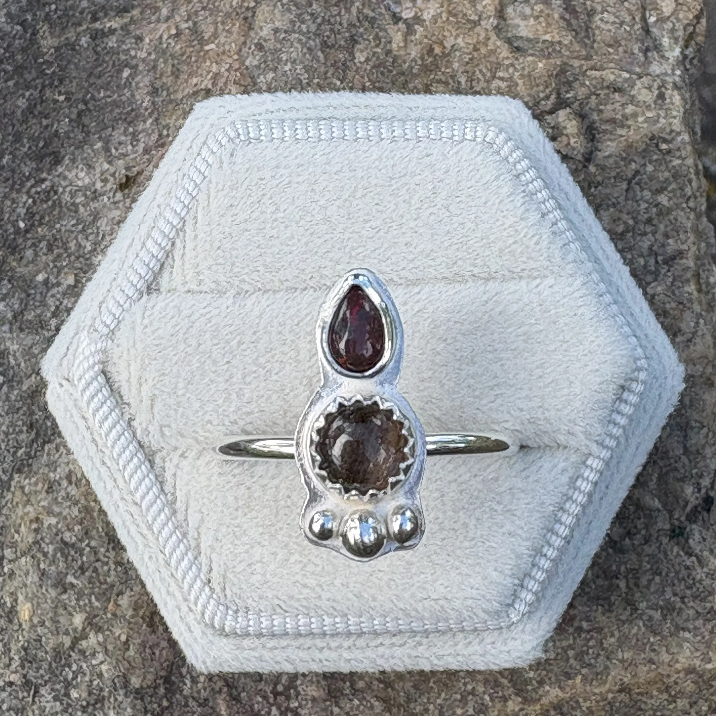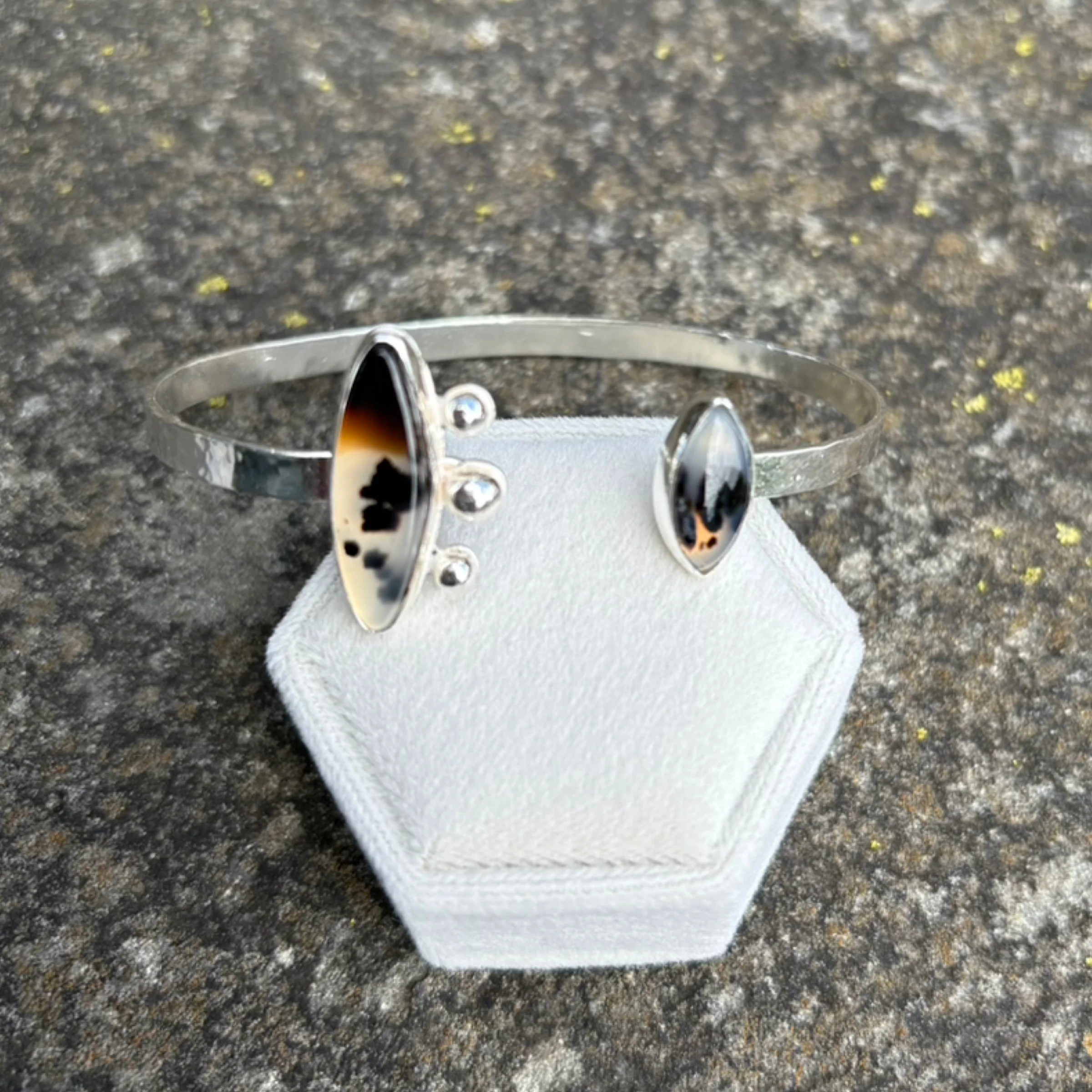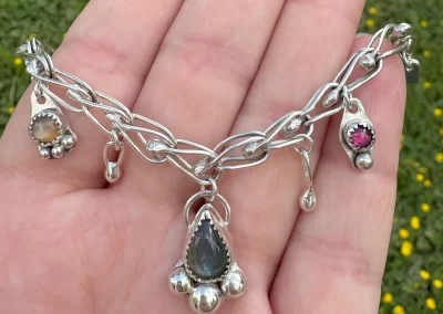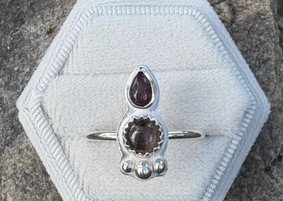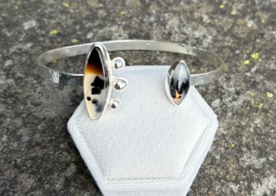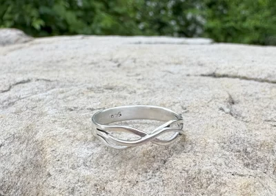 Hi, I’m Melissa with Melissa Jacklyn & Co.  My jewelry making and metal smithing journey began in high school at Allen with Mr B.  However, for many years I focused on other forms of art such as photography and watercolor. In 2024, thanks to my son, I started taking classes at Baum and rekindled my love for metal smithing. Soon after, I set up a home  studio and opened Melissa Jacklyn & Co.  I work mostly in sterling silver with some copper, brass and bronze mixed in.  I would describe my work as simple and a little dainty, with the occasional statement piece.