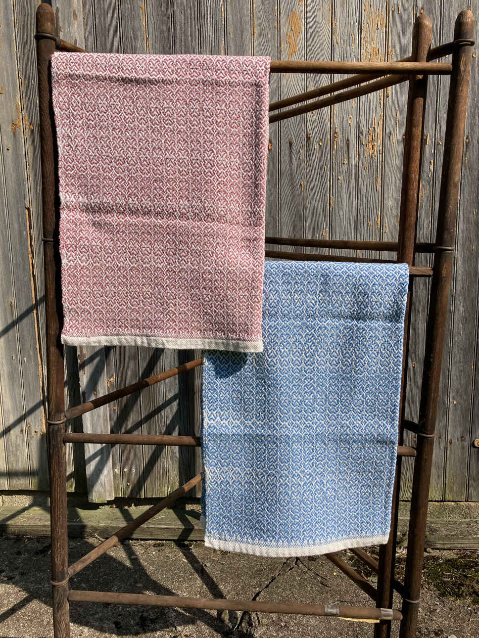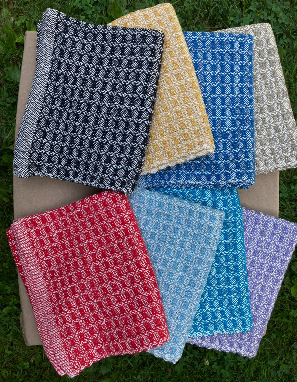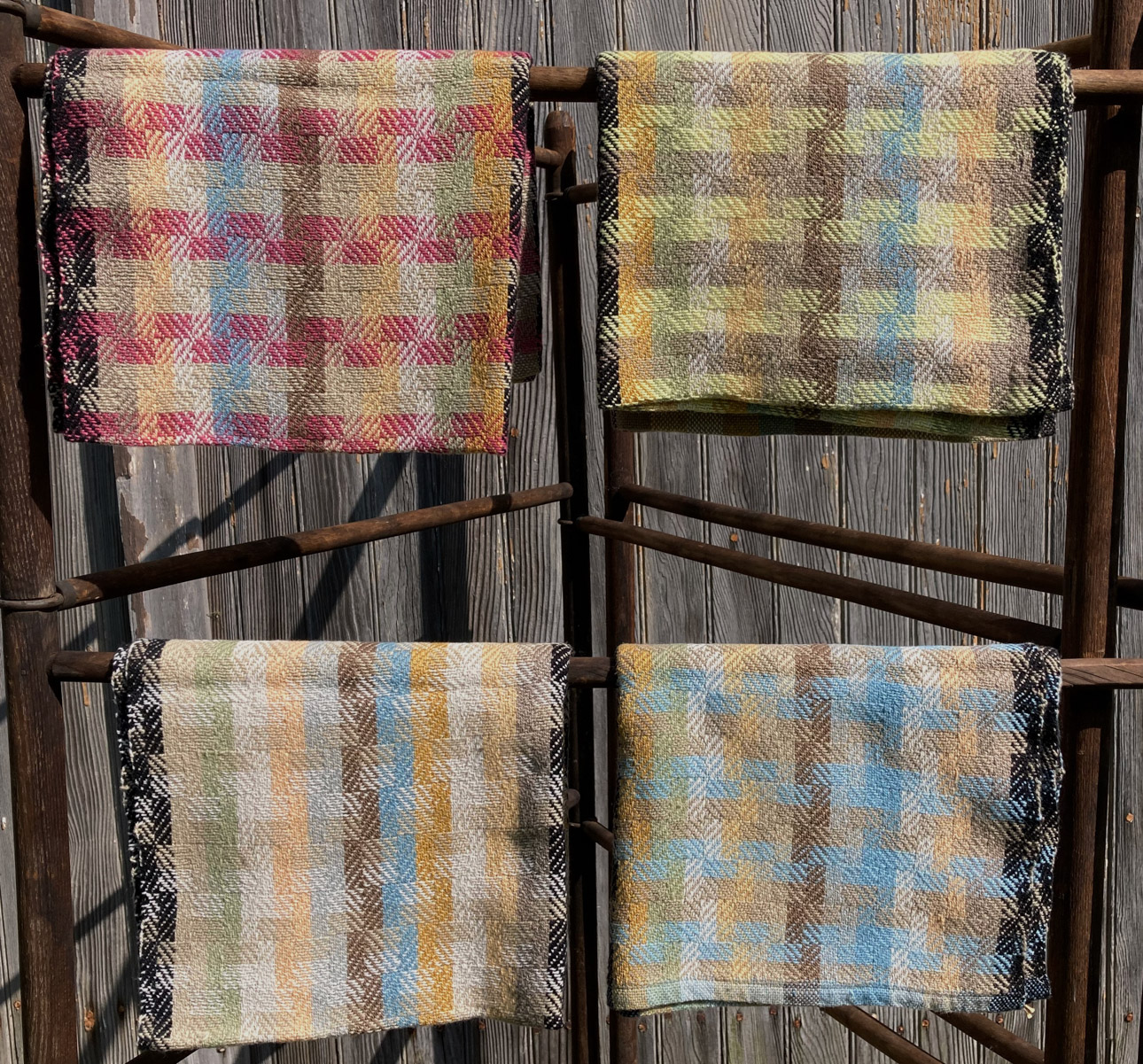 I never considered the arts as a career path – I completed college with a degree in nursing, and worked in the field until retiring.  I have continued to pursue fiber arts as a hobby and my interest has grown over the years.   In the early 70’s, I watched someone spinning yarn, and soon had the opportunity to take a class.  Being able to make my own yarn was thrilling!  I got a spinning wheel – I took a natural dyeing class. I gathered black walnuts and goldenrod and cooked up pots of dye for my yarn.  I thought I would not be interested in weaving – but I was soon borrowing every weaving book in the library and  teaching myself the basics, and soon I had to purchase a loom.